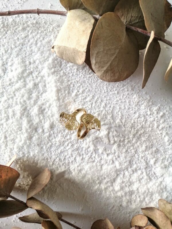 La bague ginkgo biloba est symbole d’endurance et de vitalité, d’espoir et de paix.