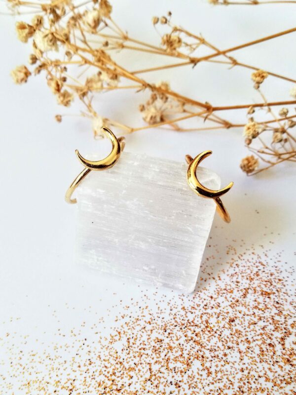 La bague lune or est un bijou spirituel en laiton baigné d’or 24 carats haute résistance sans nickel ni cadmium.