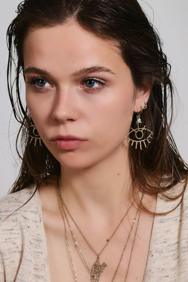 Elles sont très légères à porter et sont livrées avec des fermoirs en silicone transparent pour que tu ne les perde pas. Ces boucles d’oreilles “oeil” sont en or fin 24 carats haute résistance sur une base laiton.