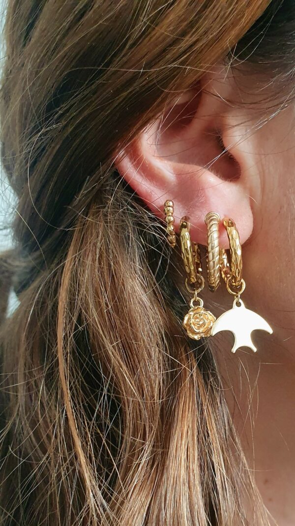 • Possibilité de créer une paire « jardin » en associant une boucle charm hirondelle avec une boucle charm rose ainsi qu’une paire « nature » avec une feuille d’automne symbole de renouveau et d’espoir.
