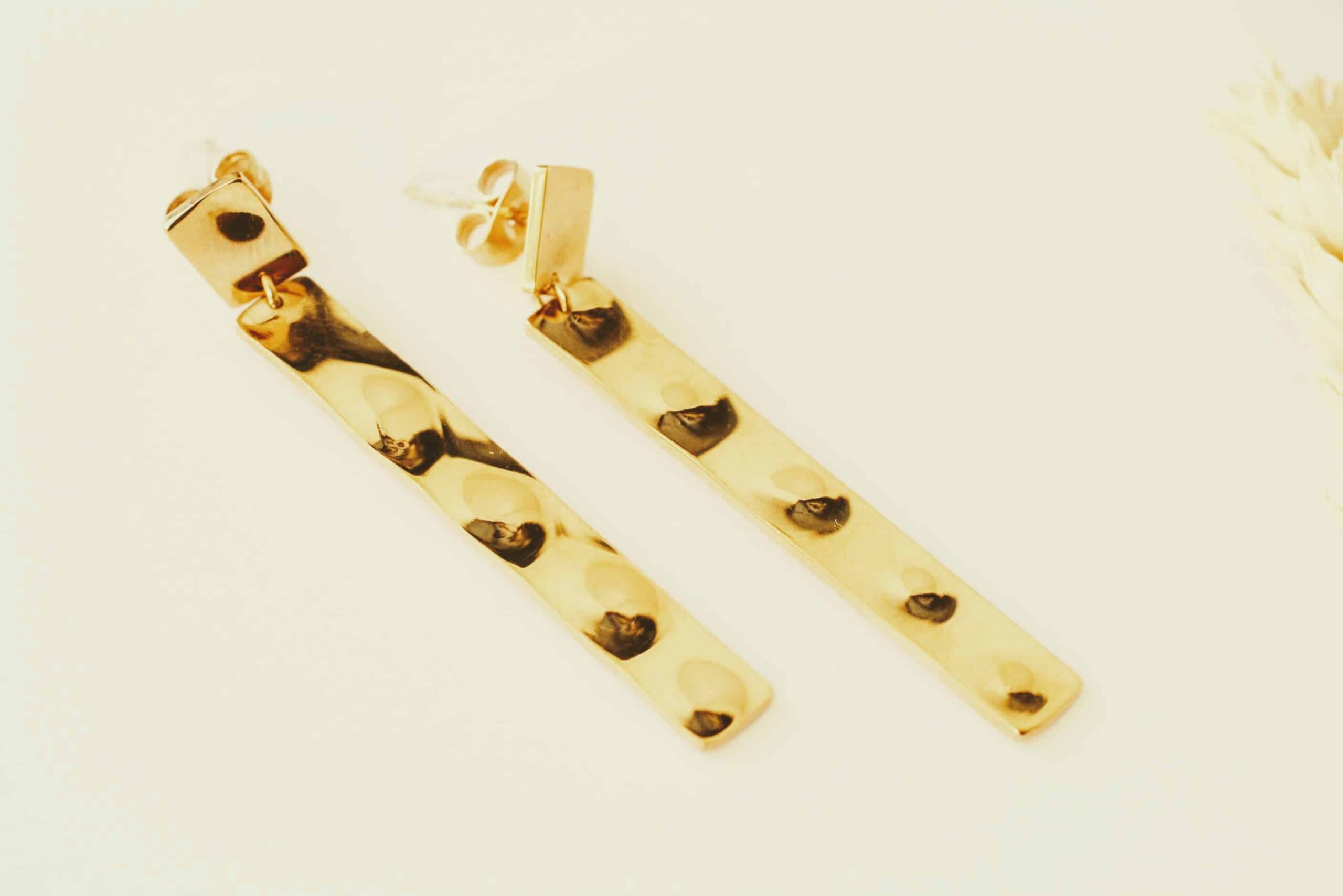 Boucles d’oreilles martelées dorées à l’or fin 1 micron haute résistante, sous garantie, voir notre page garantie.