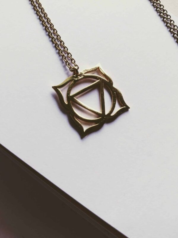 Collier CHAKRA RACINE en laiton baigné d’or 24 carats haute résistance sans nickel ni cadmium.